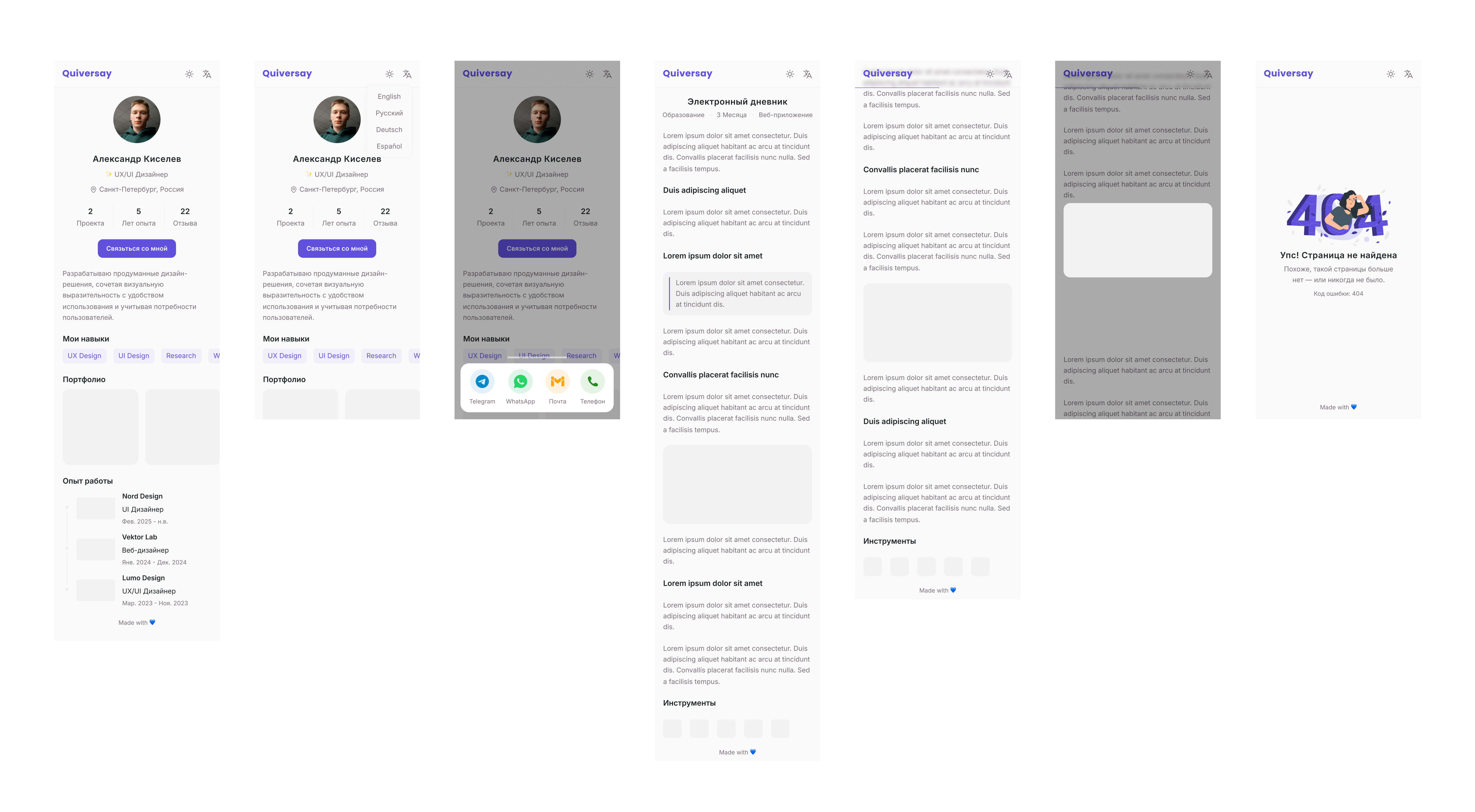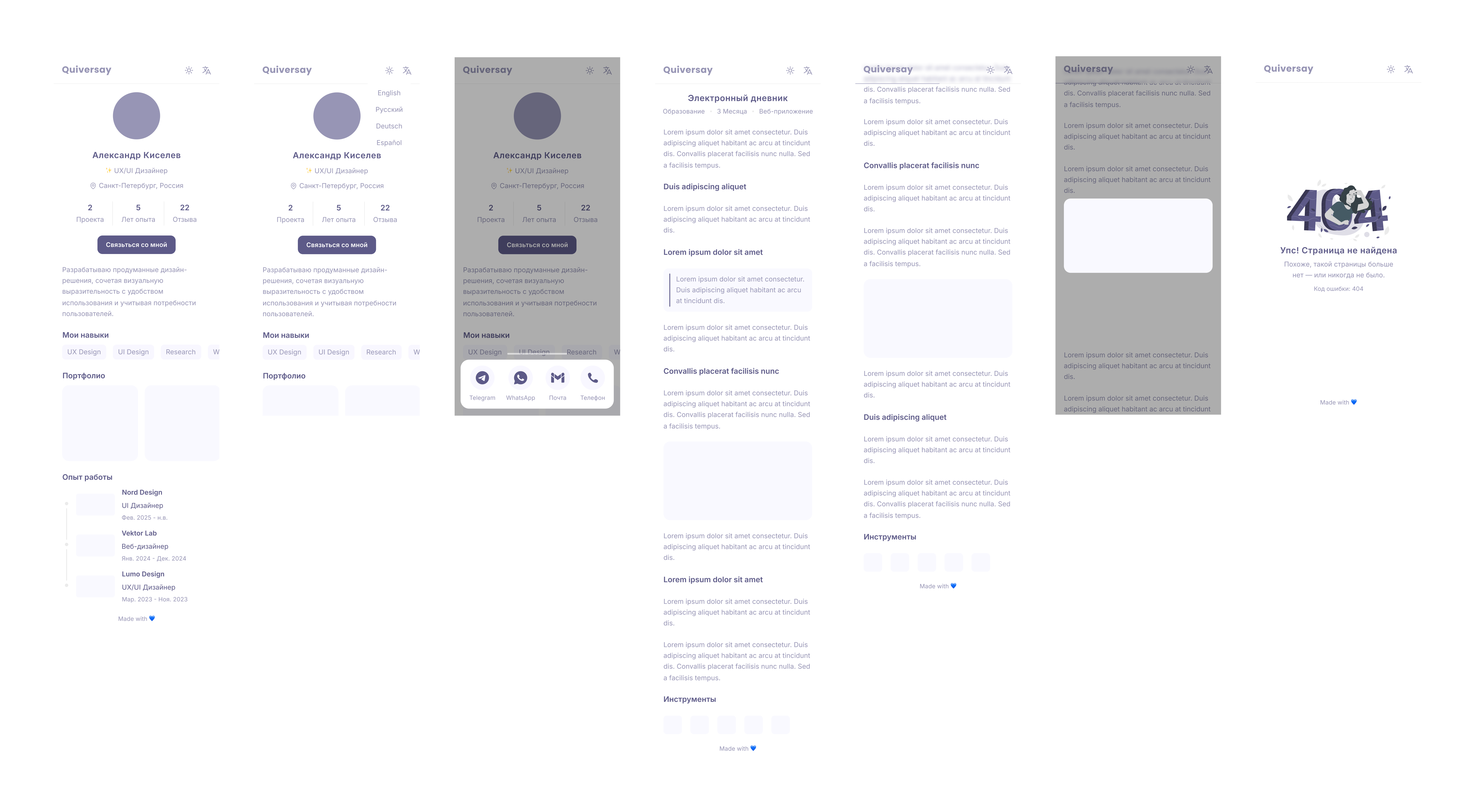 Я не стремился сделать ещё один шаблонный сайт по типу «вот работы, вот контакты». Мне хотелось чего-то большего: сайта, который говорит, показывает и чувствует, как я сам.